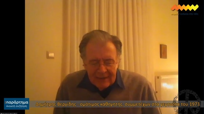 Στη συζήτηση, που συντόνισε ο δημοσιογράφος Μιχάλης Βασιλάκης, συμμετείχαν επίσης ο κ. Νίκος Τσούκαλης – δικηγόρος και πρώην βουλευτής Αχαΐας, ο κ. Δημήτρης Κοσμόπουλος – συγγραφέας του βιβλίου «Δικτατορία και Αντίσταση στην Πάτρα 1967-1974», ο κ. Δημήτρης Βεργίδης – ομότιμος καθηγητής και συμμετέχων στα γεγονότα του 1973, η κ. Αναστασία Αποστολοπούλου – Πρόεδρος του Συλλόγου Γονέων και Κηδεμόνων του 9ου Γυμνασίου Πατρών που συστεγάζεται με το Παράρτημα.